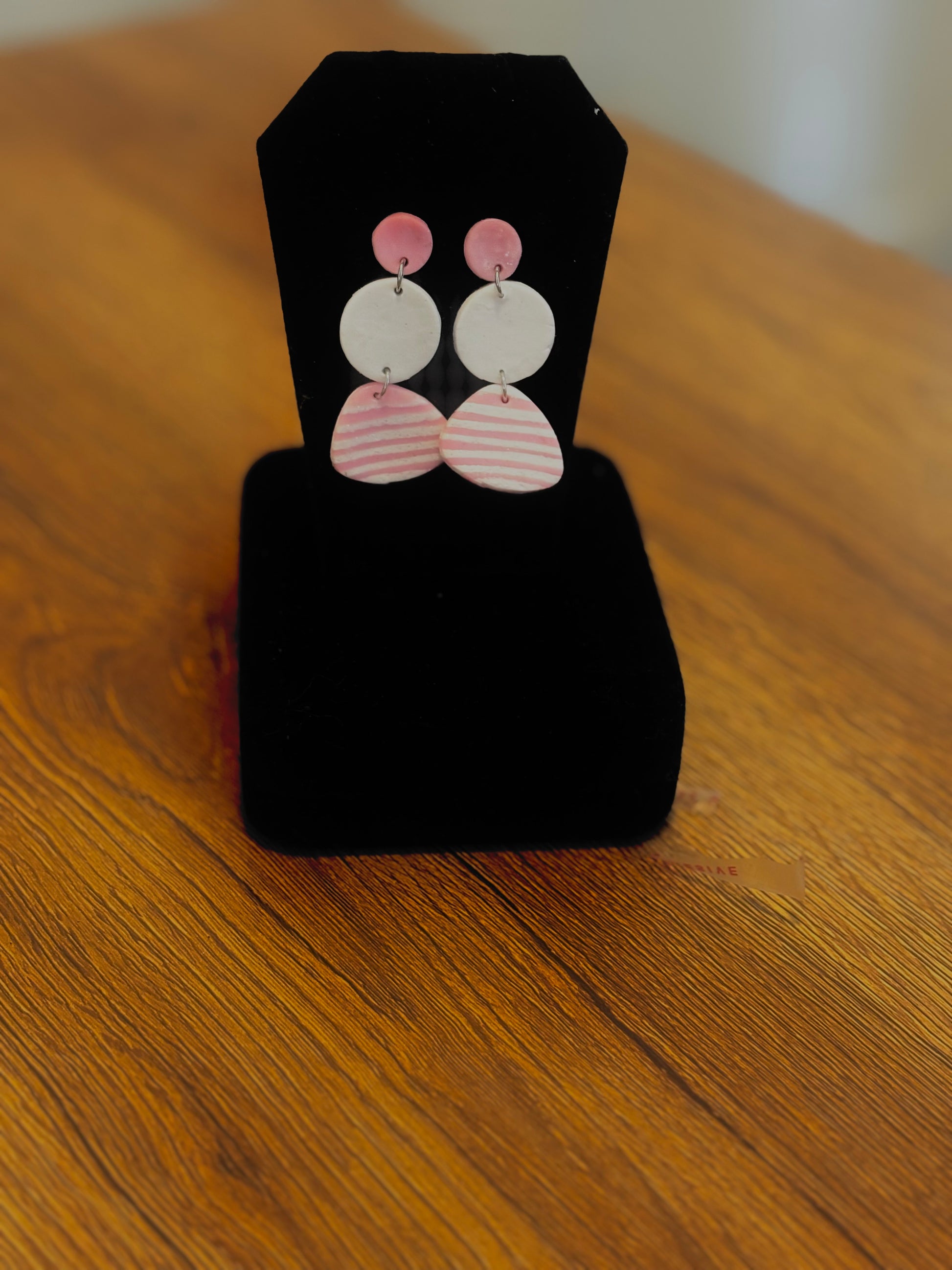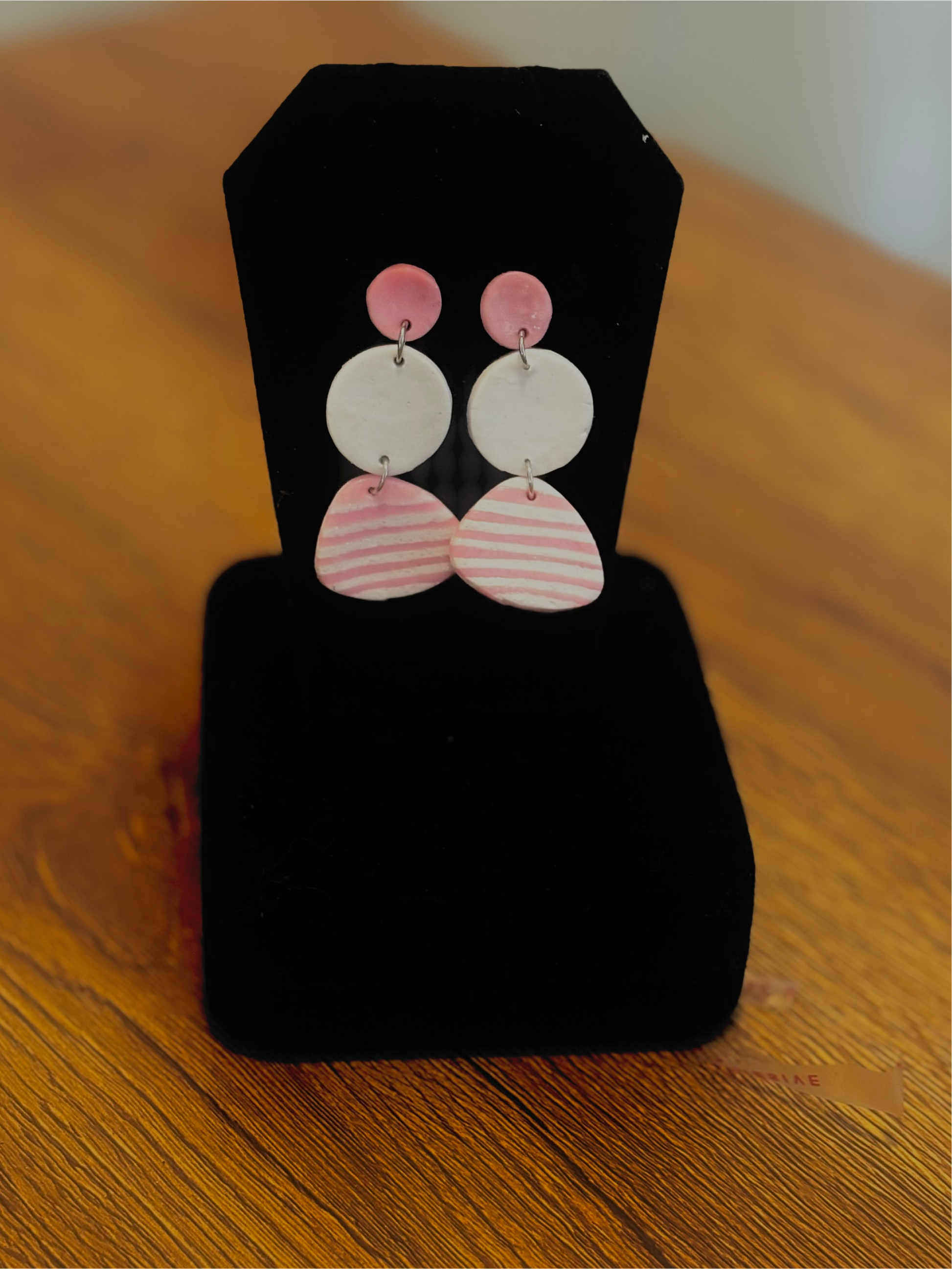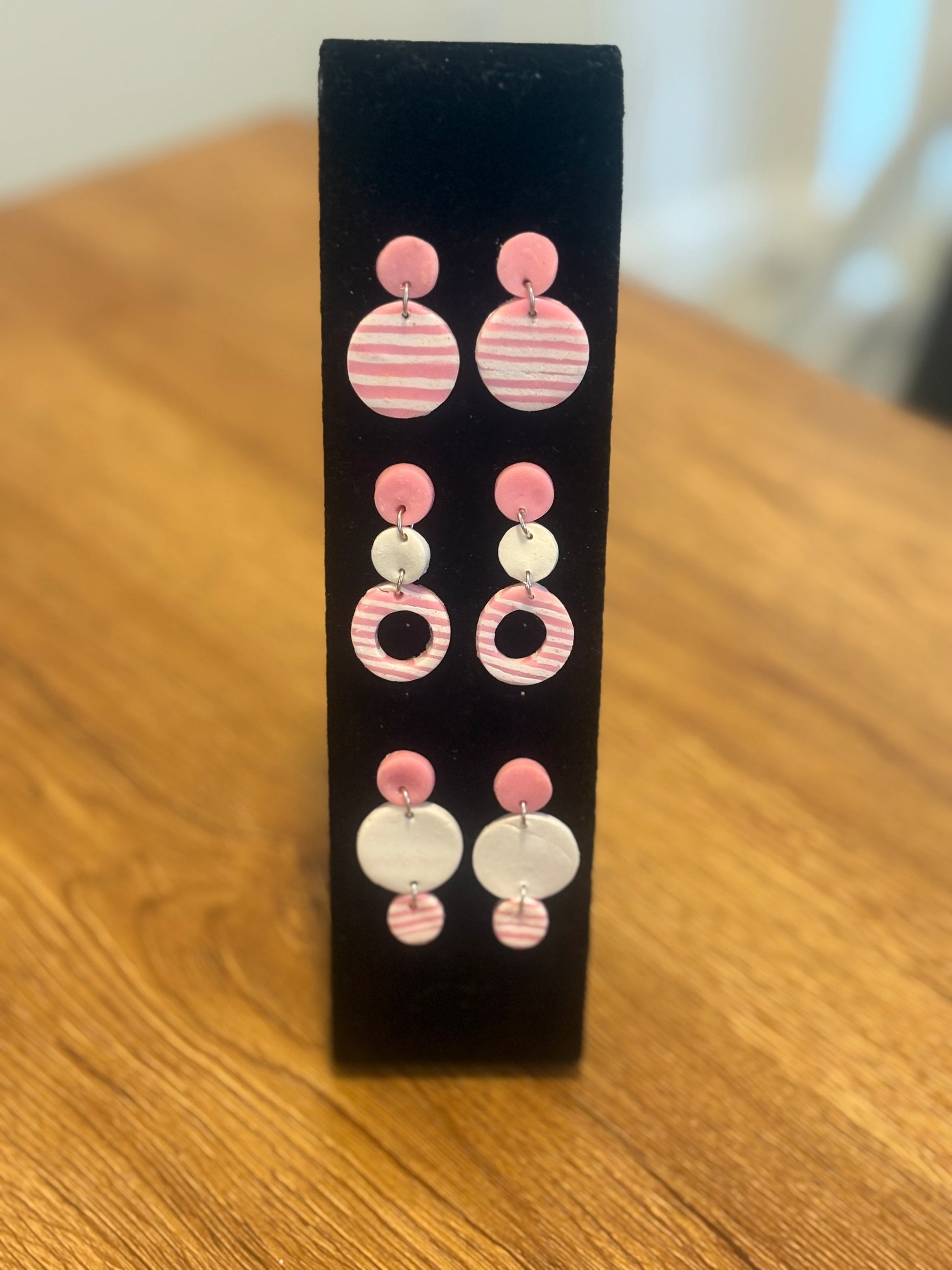 Fun and funky white and pink with stripes sets of earrings. $15 each or 3 for $40.